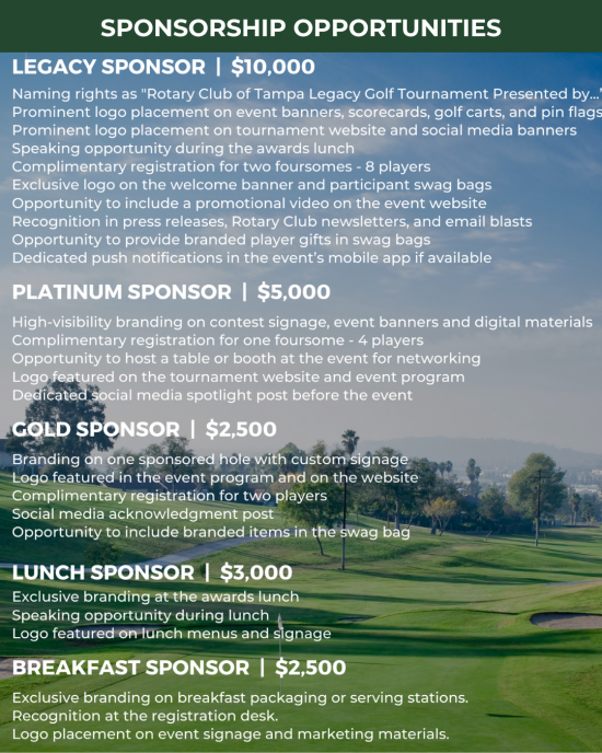 Join the Rotary Club of Tampa on April 20, 2026, for a memorable day of golf for a cause.